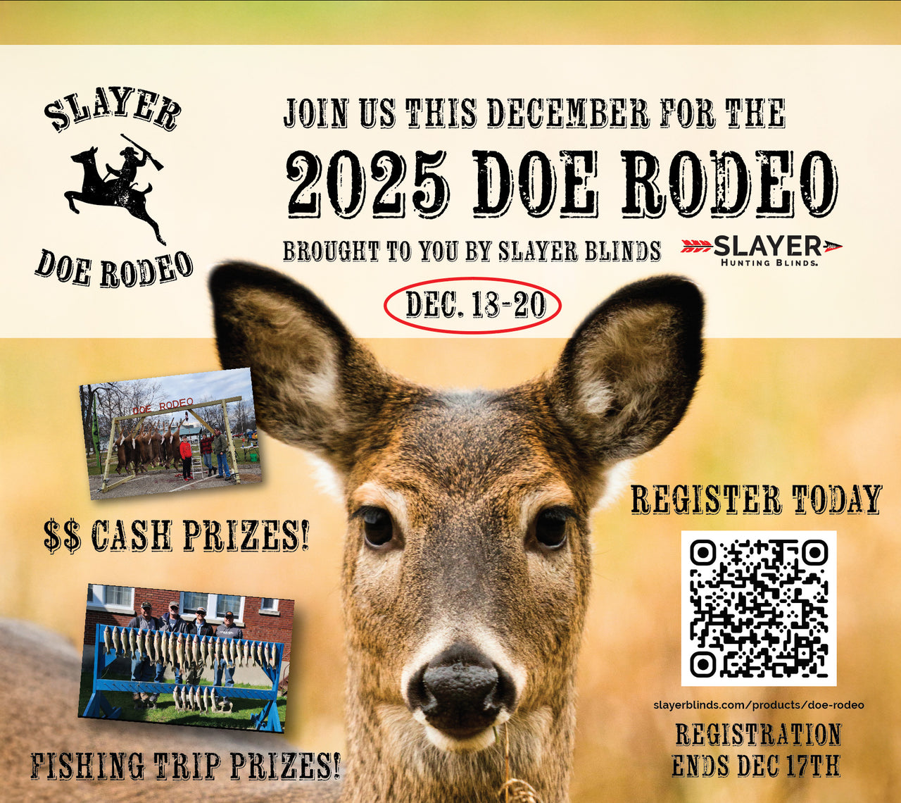 Join our 6th annual Doe Rodeo event now in 3 different locations! It’s going to be a super fun event with cash and fishing trip prizes! Proceeds from the event will go to support the Michigan Raised At Full Draw youth bowhunting camp which helps get kids into archery, hunting, and the outdoors. Proceeds will also support Michigan Sportsmen Against Hunger.