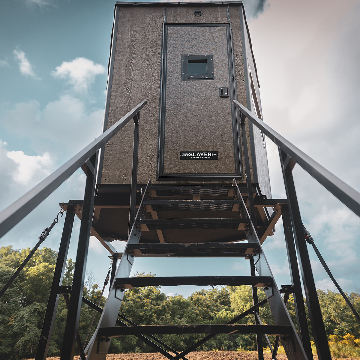 Climbing up into the Slayer Blind is just as easy as walking up the stairs in your house. The angle on the Slayer staircase is very similar to the staircase in your home.