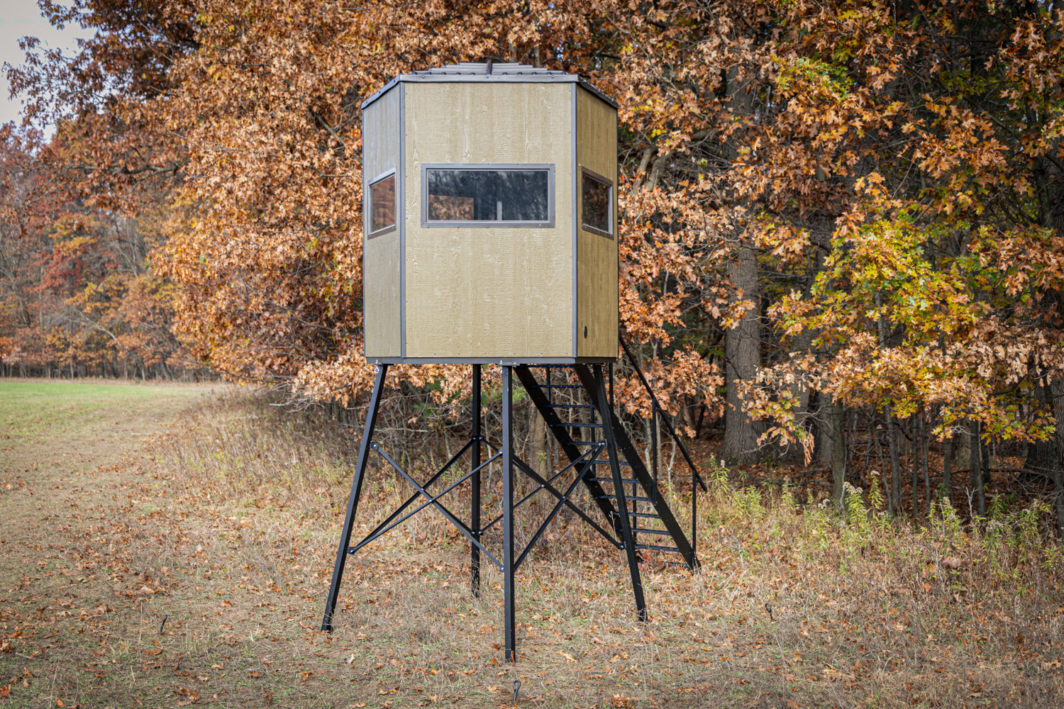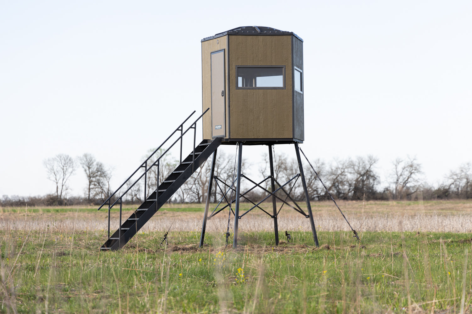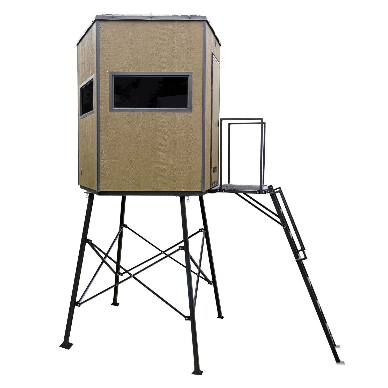 The Slayer Blind is the ultimate hunting blind and is the perfect combination of comfort, durability, and ease of use. Slayer Blinds are a 5 sided blind for great visibility with a 6'6" floor plan. Slayer Blinds are made of the highest quality materials so they'll last a lifetime. With a one piece polymer roof, an aluminum frame, a lp panel shell, our blinds are maintenance free. Our windows are made of Marine-grade glass and open silently. The carpeted interior makes the blind comfortable and silent. Slayer Blinds are also modular and can be easily assembled and disassembled. Slayer Blinds are made in Rockford, Michigan!